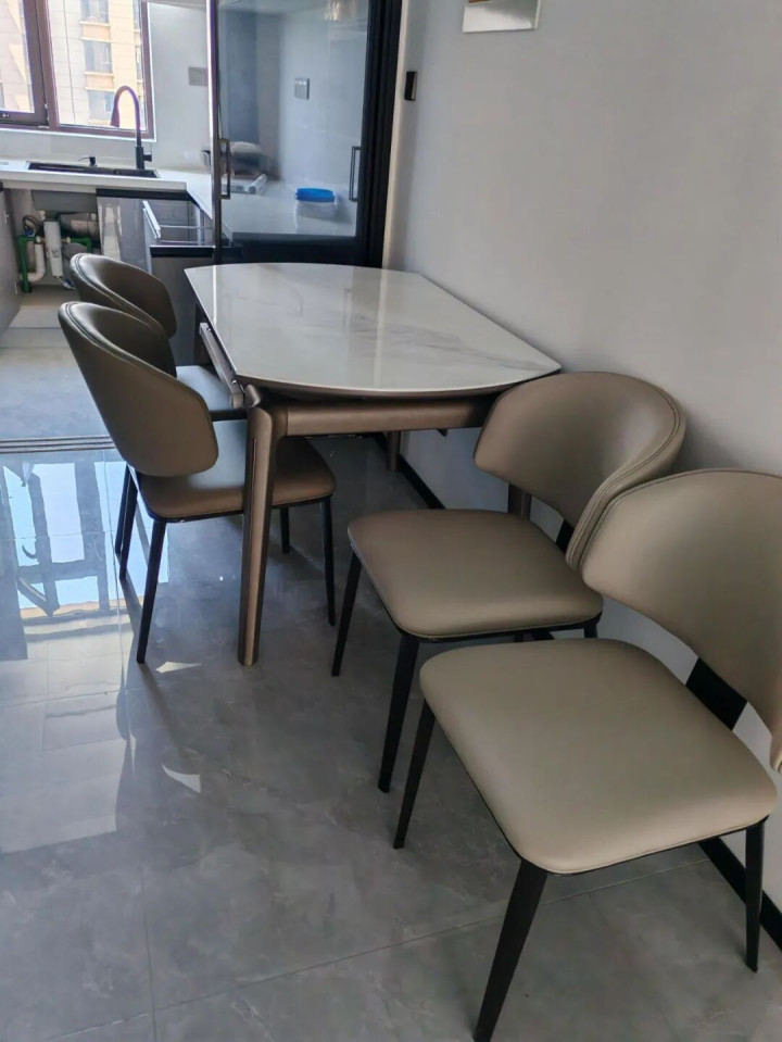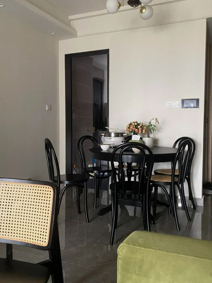 不少东谈主装修挑餐桌时,会把整套餐椅一次性买皆,心里还筹算着“万一以自后客多”,得多配上两张,于是明明一家三口,非要配六把椅子。