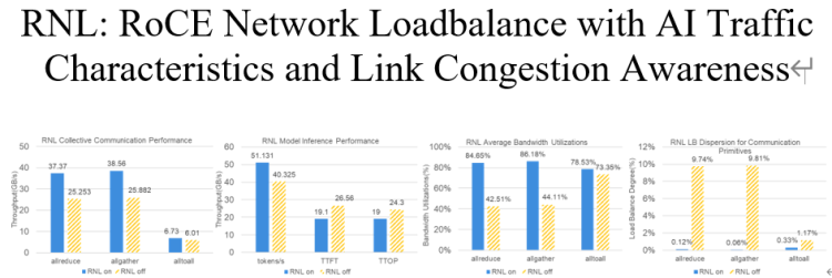 在实测环境中,RNL技能不仅展现出高可靠性,更体现出在升迁AI业务效果与裁减总领有本钱(TCO)方面的双重上风。在性能升迁方面,围聚通讯原语性能升迁50%,带宽垄断率达85%,负载平衡毒害度裁减90%;AI推理场景下,TPS(每秒处理事务数)升迁26%,TTFT(首字节时候)时长减少 30%,TPOT(每输出令牌时候)时长减少 22%;全体部署本钱裁减60%,为AI集群的范围化落地提供了经济高效的齐集基础。