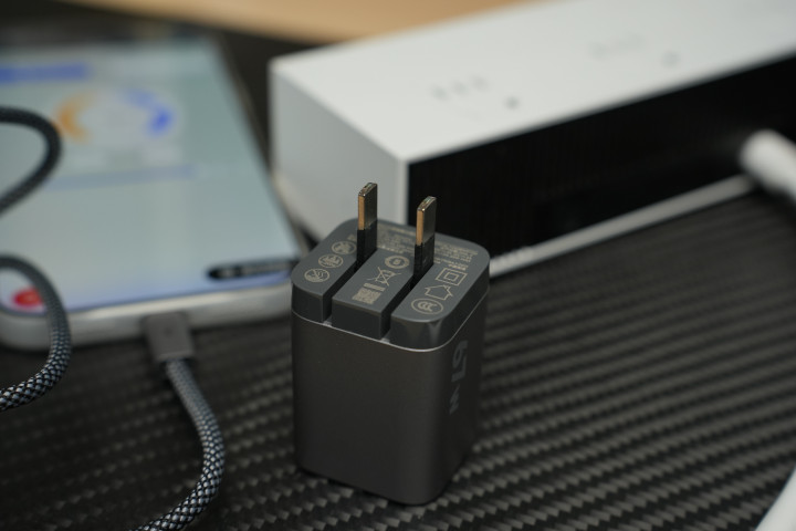 它果真作念到了 “鸡蛋般大小”,47×35×33mm 的尺寸比同规格居品小 2/3,77g 分量揣进牛仔裤袋毫无压力,出差旅行省了超多空间。折叠插脚狡计超贴心,还能减弱适配各式排插,再也不怕充电头 “打架”,45:55插脚,插上墙不会松驰松动。